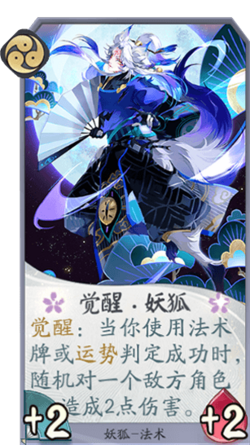 当妖狐使用法术牌时,如果投出运势4就能对随机敌方角色追加一次伤害。