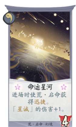 荒·启命在造成战斗伤害时就能进入启悟状态,并且为启悟区赋予「星爆」之力。