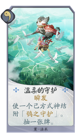薰能够使己方回合最后攻击的式神结附鸮之守护,为其减少1点所受伤害。