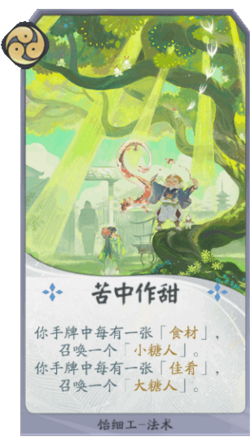 勤劳热忱的饴细工善用糖浆创造世间万物,在牌局中也因此出类拔萃,能为己方贴心地补充「食材」资源,提供优质的“后勤补助”。