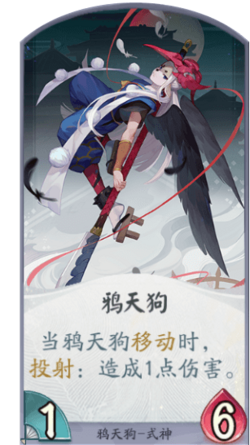 灵活的移动和投射机制使得鸦天狗既能正面战斗,又能从侧面骚扰敌方,是一位机动性很强的式神。