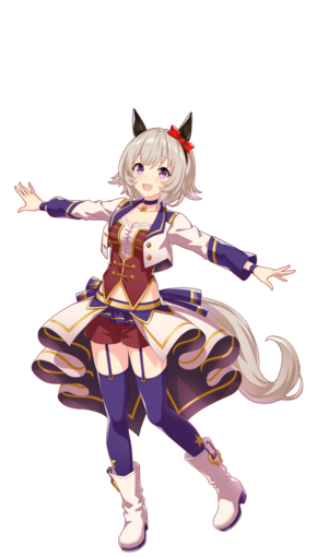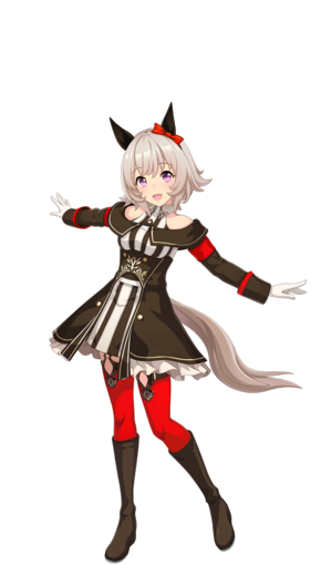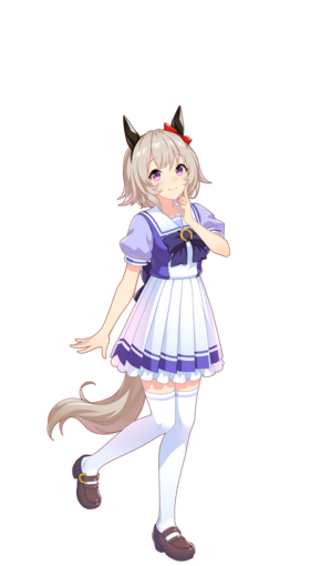 看似天然其实腹黑有心机,被经常能见识到其可爱气场的醒目飞鹰认为是可怕的孩子。在女儿节为了竞争女雏而和春丽、川上公主、东商变革争执不下,利用只有自己是短途选手的优势提出进行“公平”的1200米赛跑。海边假日集训时试图偷师同为短距离跑者的西野花,结果成了帮助小花一起照顾各位赛马娘前辈的帮手天然克腹黑。