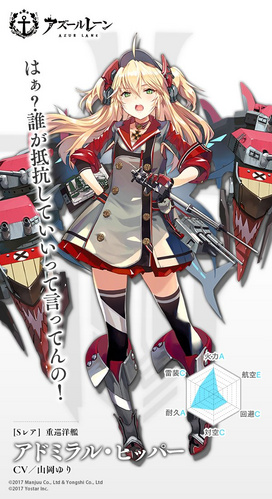 虽然是希佩尔海军上将级的大姐,但是完全没有姐姐的成熟感,反而更像是位骄横的妹妹,并且——已经钦定是众姐妹中胸最平的。应该是被萤火虫改给撞成平胸了。