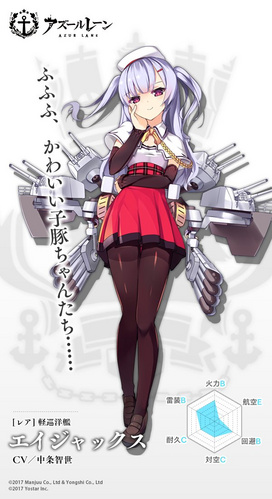 | 获得 | 指挥官,这里是利安德级轻型巡洋舰的三号舰,阿贾克斯。我也算是声名远播了呢……指挥官大人~要不要看看我的衣橱里有什么惊人的东西呢~嘻嘻~ | |