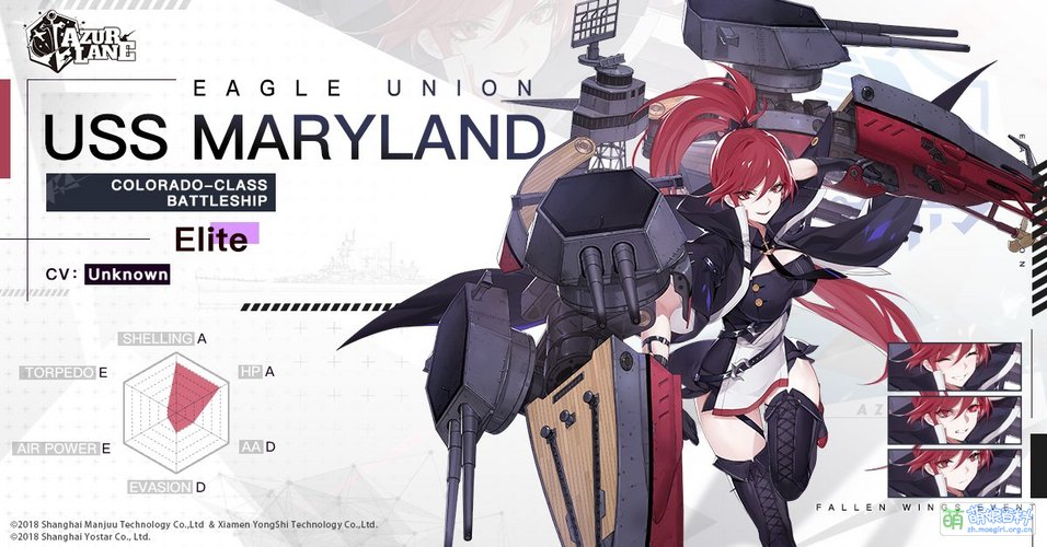马里兰(馬里蘭,Maryland,メリーランド,메릴랜드)是由蛮啾网络、勇仕网络联合研发的移动设备游戏《碧蓝航线》及其衍生作品中的登场角色。
