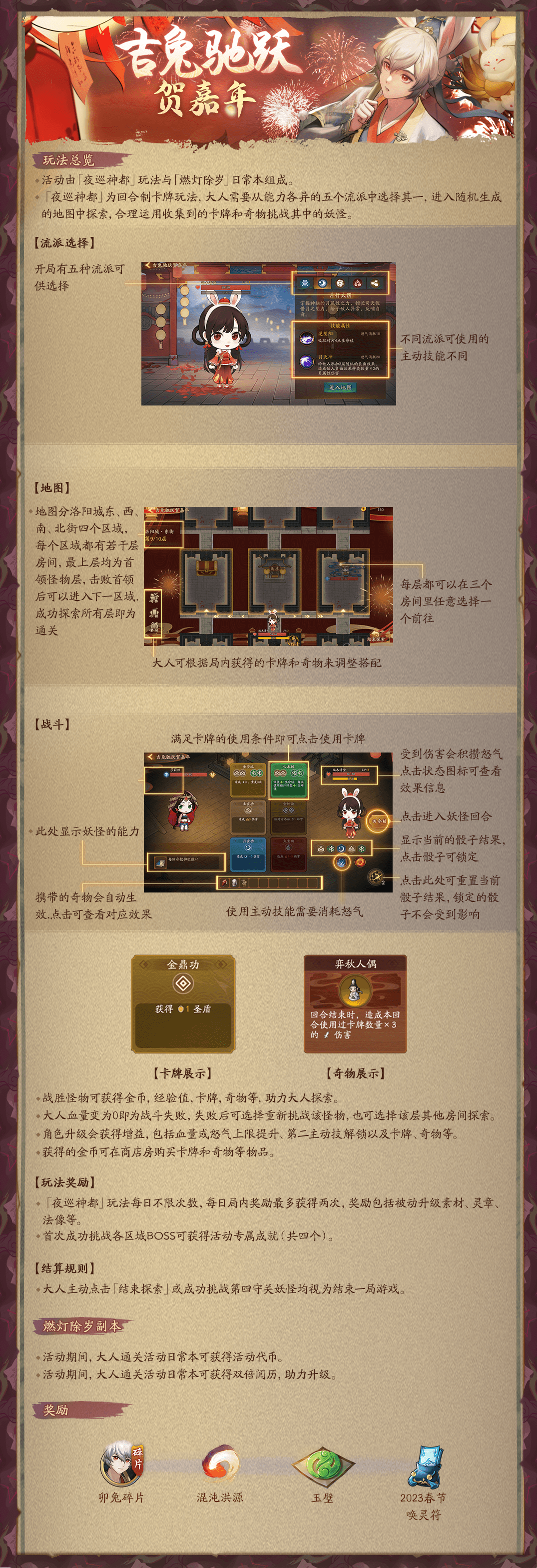 本界面为手游《神都夜行录》2023年春节活动「吉兔驰跃贺嘉年」有关信息收录界面。[1]