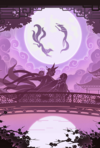 几片羽毛突然从天空落下,一个轻巧的身影在空中盘旋几圈停在月亮之前。
