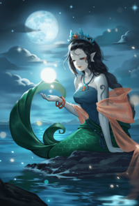 极少有人能看见,清光遍照的海面上,鲛人潜浪起舞,对月而歌。传闻中,它们泣泪成珠,擅纺鲛纱,世代栖息于沧海深处。