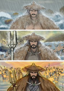 - 禹幼时随父鲧东迁来到中原,尧时洪水泛滥,民不聊生。鲧受命治水,采用障水法抵挡洪水,九年无果,被尧命祝融处死。鲧死后,禹被任命为司空,继承父亲的治水事业。