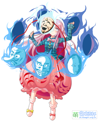 由面具所转化而成的付丧神。持有66个代表不同情绪的面具,通过这些面具可以表达出不同的感情。因为本体以木无表情为主,总是依靠面具来表达情绪,名副其实的面瘫少女。