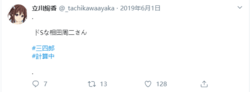 - 2018年5月 立川绚香的Twitter注册立川絢香。