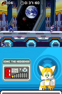 在未知区域索尼克和艾格曼·内加进行最后一战,最终索尼克将艾格曼·内加击败。之后索尼克遇到了塔尔斯等人和他们准备庆祝。可就在这时,艾咪有一次冲向索尼克,迫使索尼克赶快远离艾咪。此时塔尔斯感谢一切事情重回原样。