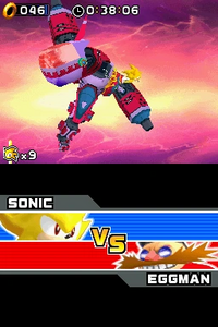 索尼克在绿叶风暴奔跑的途中,遇到了蛋头博士。此时的蛋头博士沾沾自喜,表示究极的力量将会属于自己的,然后蛋头博士和索尼克对决。