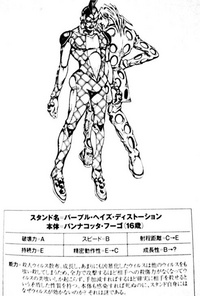 紫烟是第五部角色潘纳科达·福葛的替身。原作和动画版中仅于庞贝城对战镜中人时登场过一次。连打的时候会发出“Ubashaaaa”的战吼。