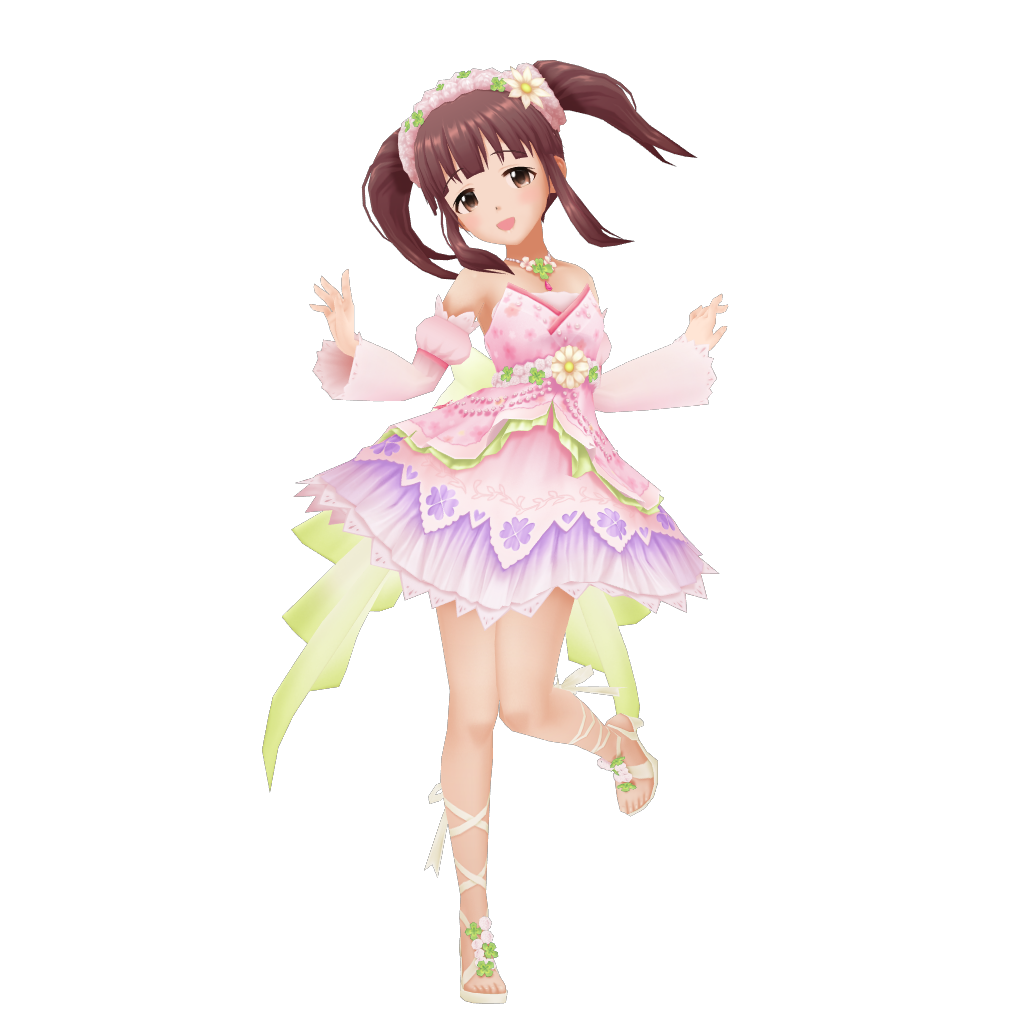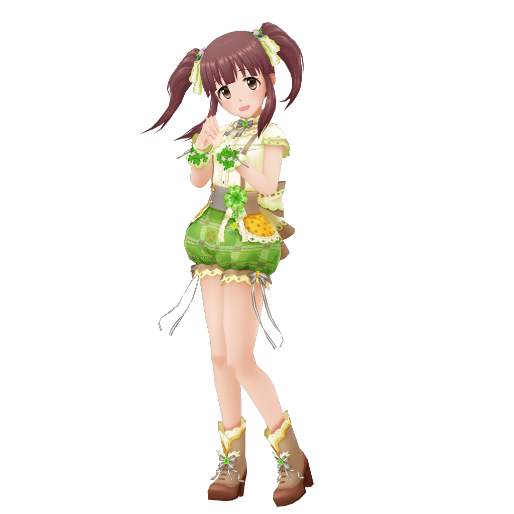 游戏中登场的弱气型偶像。棕色双马尾,身材娇小,自带无辜眼神的女孩。