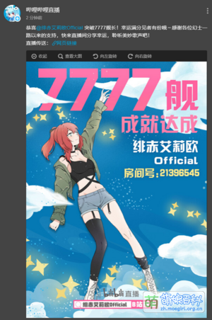 | 4月7日 | 与早濑、玖世缘联动非人学园。直播期间官方突然转发了直播间,吸引了不少新人前来围观。 | ||