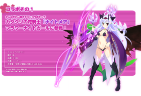 徘徊在电脑空间的她来到这个世界后,为了找寻值得一战的强敌而每晚向花骑士展开袭击,最后得到了「ナイトメア」这个名字。