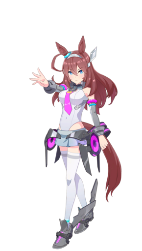 | 萌点 | 马娘、兽耳、真·马尾、长发、呆毛、发箍、高叉连体衣、白色过膝袜、扑克脸、巨乳、反差萌、天然呆、电器杀手 | |