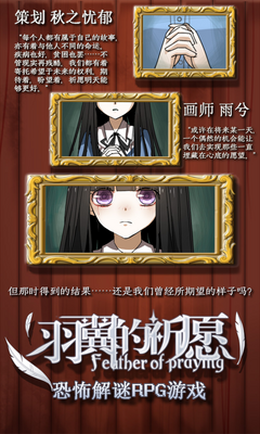 | “ | 第一次做恐怖解谜游戏,如有不足希望大家谅解。 游戏全程没有以吓人为目的的CG闪图,大家不用担心突然被CG吓哦~ 本游戏已经过5轮测试,所有的BUG均已修复,如果还有残存BUG请第一时间反馈,蟹蟹大家~(o゜▽゜)o☆ |