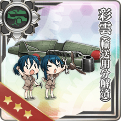 彩云(分解作输送用)是角川游戏所开发的卡牌类网页游戏《舰队Collection》(艦隊これくしょん -艦これ-)及其衍生作品中的武器装备。