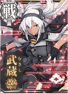 | 图鉴说明 | 大和型戦艦二番艦、武蔵だ。長崎生まれだ。よろしく頼むぞ。 我是大和级战舰二号舰,武藏。长崎出身,就请多多指教了。 |