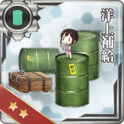 これを保持した状態で燃料が欠乏すると戦闘航海中に「洋上補給」が発動し、燃料弾薬が洋上で「補給」されます。