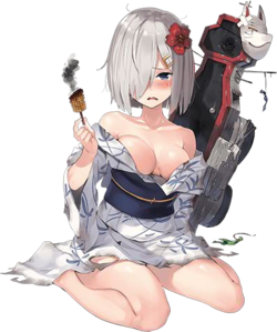 仔细观察,你会发现,平时目光坚定,性格坚强的滨风在情人节和秋祭的立绘中,中破部分都流下了眼泪。秋祭尤甚,这似乎和平日里那个外表成熟,内心勇敢的舰装少女大不相同。不过也营造出一种反差萌——也就是再坚强的舰娘也有脆弱的一面,也需要得到关怀。滨风当然也不例外,她作为小学生的一面一直被她成熟性感的身段掩盖,直到秋祭才初露端倪。在她像那个月级小兔子一样一边咀嚼零食一边说话之时,一个天真无邪的少女形象呼之欲出。这一点也不像平时那个严肃认真的她,但这样的她同样显得可爱。就如她的姐姐浦风一样,一换上浴衣逛秋祭就是要好好玩一回,绝不矜持。她也一样,虽然在战场上奋勇杀敌,但是作为一个孩子,她同样拥有属于孩子的天真无邪。
