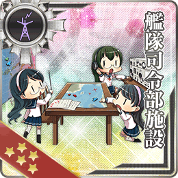 通称“舰队司令部”,仅限于装备在活动限定海域(一般称之为春夏秋冬活)中联合舰队的水上援护舰队旗舰上,用于在联合舰队中出现舰娘大破的时候,允许由二队的一艘小破以上的驱逐舰(小破不可)援护回港,回港的舰娘在战斗中头像变灰,并显示“退避”,可有效防止门神劝退,适合于磨血阶段使用,但由于退避会减少参战舰娘数目,斩杀建议斟酌考虑是否携带。