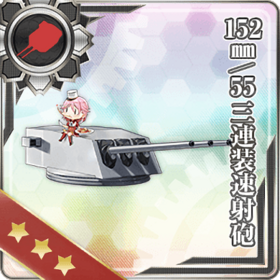 152mm/55三连装速射炮是角川游戏所开发的卡牌类网页游戏《舰队Collection》(艦隊これくしょん -艦これ-)及其衍生作品中的武器装备。