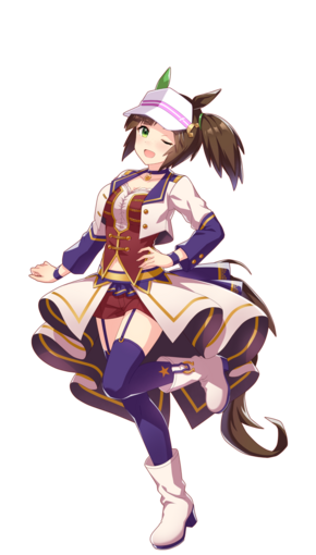 | 萌点 | 马娘、兽耳、真·马尾、侧单马尾、耳套、遮阳帽、运动衫、黑色短袜、短靴、雀斑、巨乳、打工战士、口癖、姐姐 | |