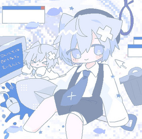 浅蓝色的头发,两边有类似猫耳的凸起,左边还带有“Χ”形的发饰,有时会戴着贝雷帽。