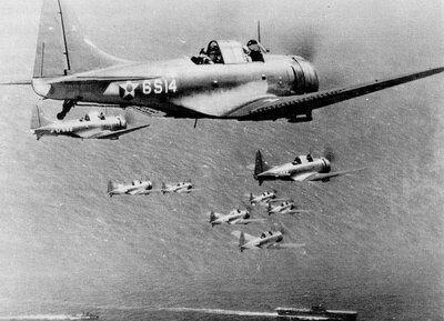 2、1942年6月4日,“中途岛海战”爆发,从美国海军的“约克城”级航空母舰一号舰“约克城”号上起飞、隶属于“第三轰炸机中队”的SBD“无畏”俯冲轰炸机击沉了日本帝国海军的“飞龙”型航空母舰二番舰“苍龙”号。