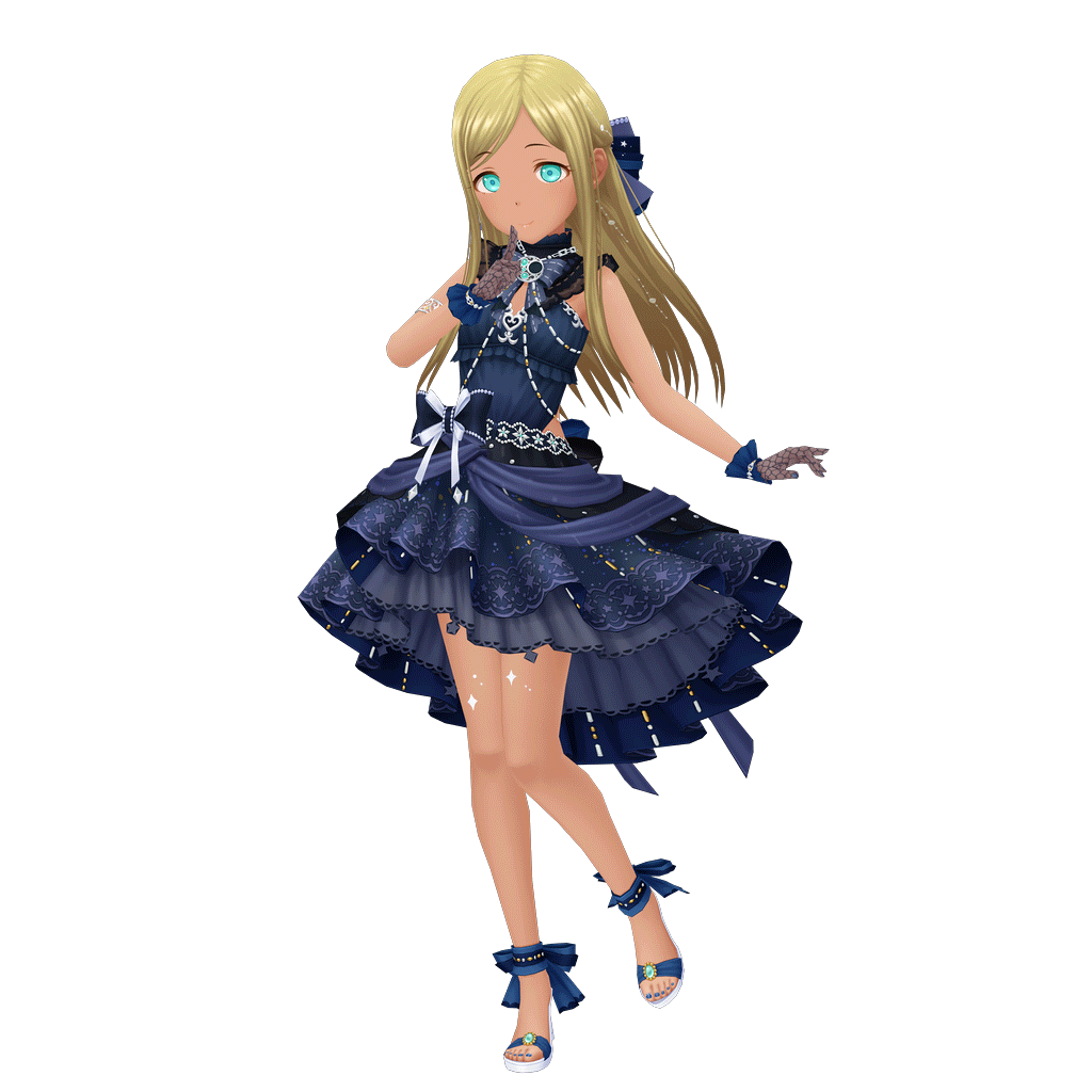 | 萌点 | 碧眼金发黑皮、长直、中分、贫乳、贫穷、外国人、离家出走、天真无邪、前大小姐 |