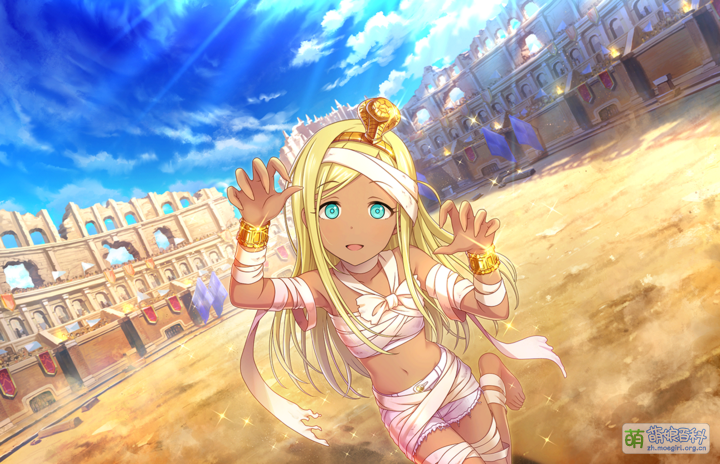 充满异域风情的外表说明她不是日本人,但究竟来自哪里又不得而知。从出身地迪拜、目前卡面和游戏台词判断很有可能是阿联酋人[2]。