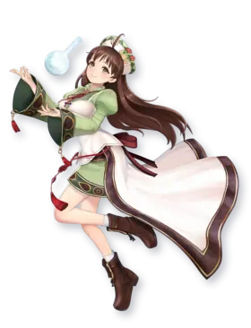 性格开朗又很会作家事的女孩,比起日常三餐,更喜欢胡萝卜。虽然双亲想要搬去邻国的大都市,不过她却非常反对,原因就是城市里胡萝卜太少了(这得有多喜欢啊!)。后来跟双亲作下在父母去ヴォルケラント王国建立基业的三年内如果能够维持自己的店的话,就可以在村子里继续生活的条件,并跟哥哥一起留在村子里生活。利用旅行中的炼金术士爱赛尔(《艾莉》中的人物)教给她的炼金术来经营自己的商店,同时发展壮大村子。性格同样是开朗活泼,由于丝毫不怕生,几乎与任何人都能很快熟识起来。
