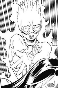 糟糕罗曼史是个自然人型替身,长有一双心形眼睛和尖刺状的头顶头顶尖尖的。