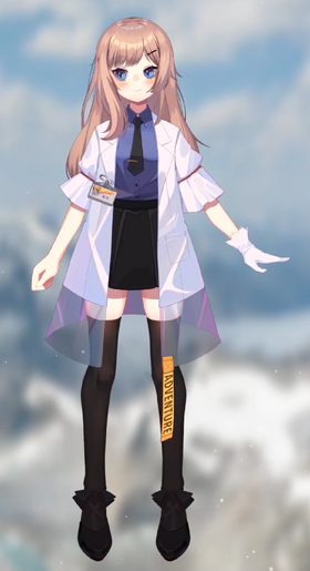 身着不好好穿的实验服,内穿蓝色衬衫,右领有姓名牌。