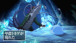 《关于我转生变成史莱姆这档事》利姆露在初始山洞中击杀的怪物甲壳蜥蜴。