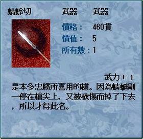 蜻蛉切是一个肉山后的长矛,极小几率能造成中毒debuff,与Tizona剑属于同款,在山铜/秘银砧处合成。该武器于1.3版本更新后被官方移除,现仅存于1.2版本的泰拉瑞亚以及一些MOD(如《Consolaria》)中。