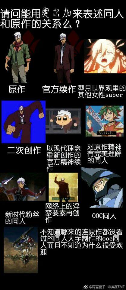 请问能用○○来表述原作和同人的关系么是以不同的作品来生动描述各个用语之间的关系的方式。