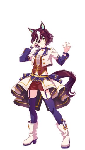 | 萌点 | 马娘、兽耳、真·马尾、挑染、短发、遮单眼发、眼罩、中靴、白色皮肤、中二病、酒保、踢栅栏 | |