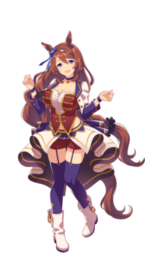 在漫画135话中由于自己不停地挑战小栗帽而被视为反派,因此自己就干脆扮成反派,为此还去找黑色艾尔学习了反派的语气。之后在136话用这个语气向小栗帽宣战。[11]不过尽管在之后的有马纪念中明显的胜过了节奏被打乱的小栗帽,却不料被半路窜出的稻荷一击败。