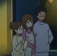 忧在棒球馆时遇到的一对父子,其中父亲正在教儿子技术,被旁边的平泽忧当场偷师成功一击正中靶心。