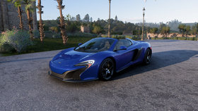 - 650S Spider登场于《极限竞速:地平线 4》和《极限竞速:地平线 5》;《地平线5》中,这辆车在静止状态下,可以按键盘上的G键开关车辆的敞篷。