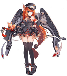 红发原案是金发 蓝瞳,身材高挑,身着德国军服的女生。因为有狐妖的血统所以头上有狐狸耳朵,也长有狐狸尾巴。