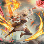 - 卡图是露世手持火刀的同时有风刀的浮游炮支援,与拿着另外几支火刀的素身零衣共同作战的场景。