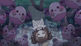 在本曲PV中,背景里一有鱼尾巴的图案存在。来到PV的后半部分,楪的手上和额角出现了鳞片(对应游戏中的石化),在PV的最后闪过的图片中,楪本来所在的位置被一堆泡沫替代。应该是neta童话《海的女儿》中,小美人鱼的自我牺牲的死亡。人鱼的魔女直呼内行