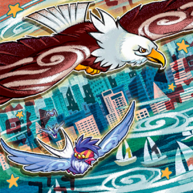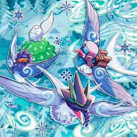 “随风飘飘游”系列主打通常召唤、上级召唤,系列下级怪兽均为1星风属性/水属性鸟兽族怪兽,是旅鸟们迁徙时遇到的其他鸟儿;上级怪兽则是10星风属性/水属性鸟兽族怪兽,是旅鸟迁徙起点和终点的极地鸟类。此外还经常搭配烈风帝 莱扎、霞之谷的巨神鸟等鸟兽族上级怪兽,以及神鹰羽毛吹雪等鸟兽族支援卡。