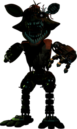 Foxy是FNAF的次要敌人,他后来在接下来的游戏续作中出现了多种变体,也是Freddy Fazbear's Piazzaria(弗雷迪菲兹熊的披萨店)的海盗表演者。他是一个电子化的、拟人化和人格化的狐狸,和游戏中的其他玩偶一样,他在晚上处于“自由漫游模式”,在这个模式中,他和其他敌人一起在Freddy Fazbear's Piazzaria内徘徊,直到早上6点,那时它们的伺服系统将会锁定。