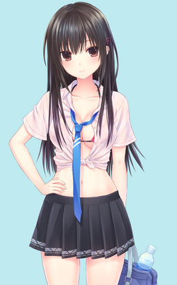 在二次元之中,当女角穿上领带的时候,有穿著衣服戴领带和不穿衣服戴领带(大雾)两种方式。女角穿的多半是制服,领带和制服的颜色也有多种,总体来说深色领带和浅色衣服的搭配是最为常见的。正常穿戴的领带给女角增添了几分帅气和淑女典范,显得十分的乖巧;而穿戴不正的领带甚至错误使用(比如只戴着领带)只能增添痞气和性感(大雾)。
